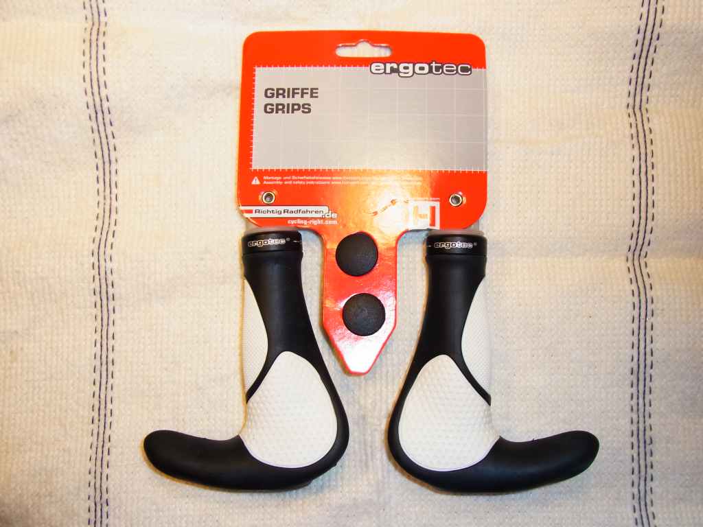 Diese Griffe von Ergotec mag ich sehr. Man kann die nicht zu langen Hörnchen fassen aber kommt dabei auch gut an die Bremsen. Man muß dazu nicht den Lenker loslassen und umgreifen. Es reicht aus, einfach den Handballen auf dem Griff zu drehen um an die Bremsen zu kommen. Viele Griffpositionen möglich.