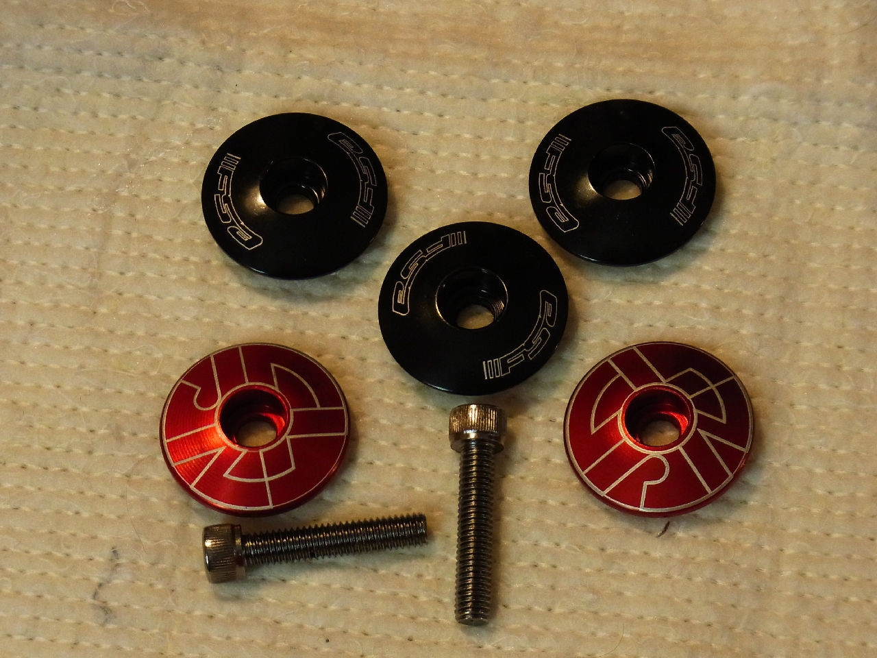 Das sind schöne Angeberkappen von FSA und NC-17. Kappen und Schrauben je 1€. Insbesondere die NC-17 haben eine bäroge Optik und sparen zusammen mit der Schraube 2g an Gewicht!