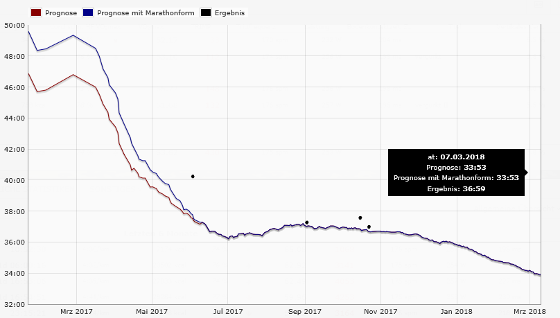 und für 10km (halte ich für groben Unfug): Auf 0.98 und Rückwirkender Berechnung auf 45 Tage (statt 60) wird es langsam realistischer, wenn auch noch optimistisch.