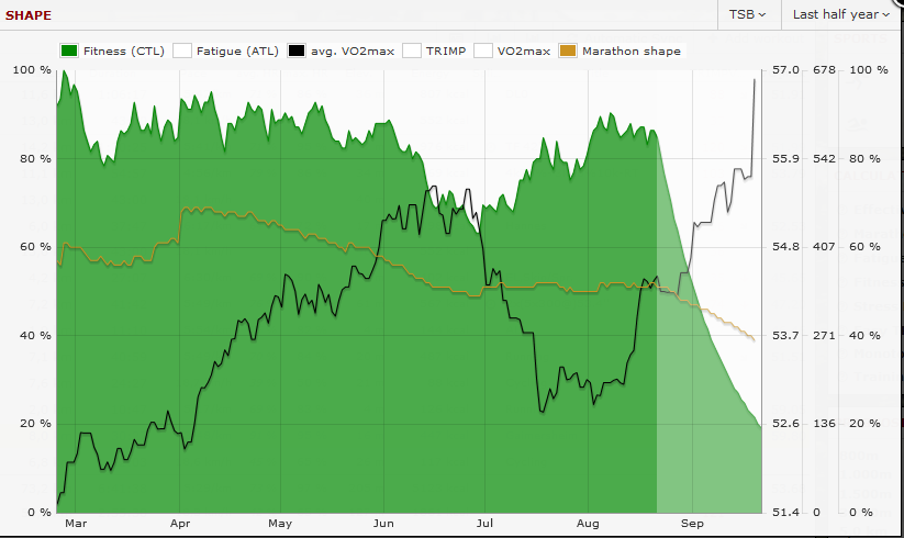 Angehängt ist meine aus Runalyze exportierte "Form"-Kurve. Vorhersage für Mitte September sieht allerdings gut aus