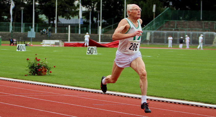 Ganz nebenbei: Seine Weltbestleistungen in der AK M70 über 400m in der Halle und auf der Bahn: 59,48 bzw. 59,34 Sekunden.