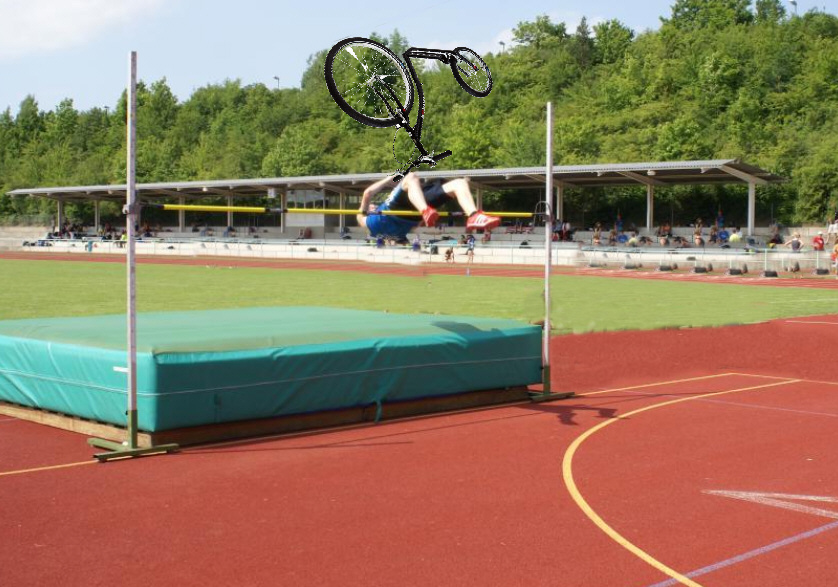 Nee, das ist kein Fake. Das ist Rene Elzinga. Er ist relativ groß (2 m?). Ja, eine klassische Hürde ist wohl noch höher, aber ein Carbonroller wiegt auch nur noch ca. 4 kg, keine geschätzten 8 kg wie der auf dem Bild. Also es klingt schon mal kaum machbar, das ist eine gute Voraussetzung für eine Wette