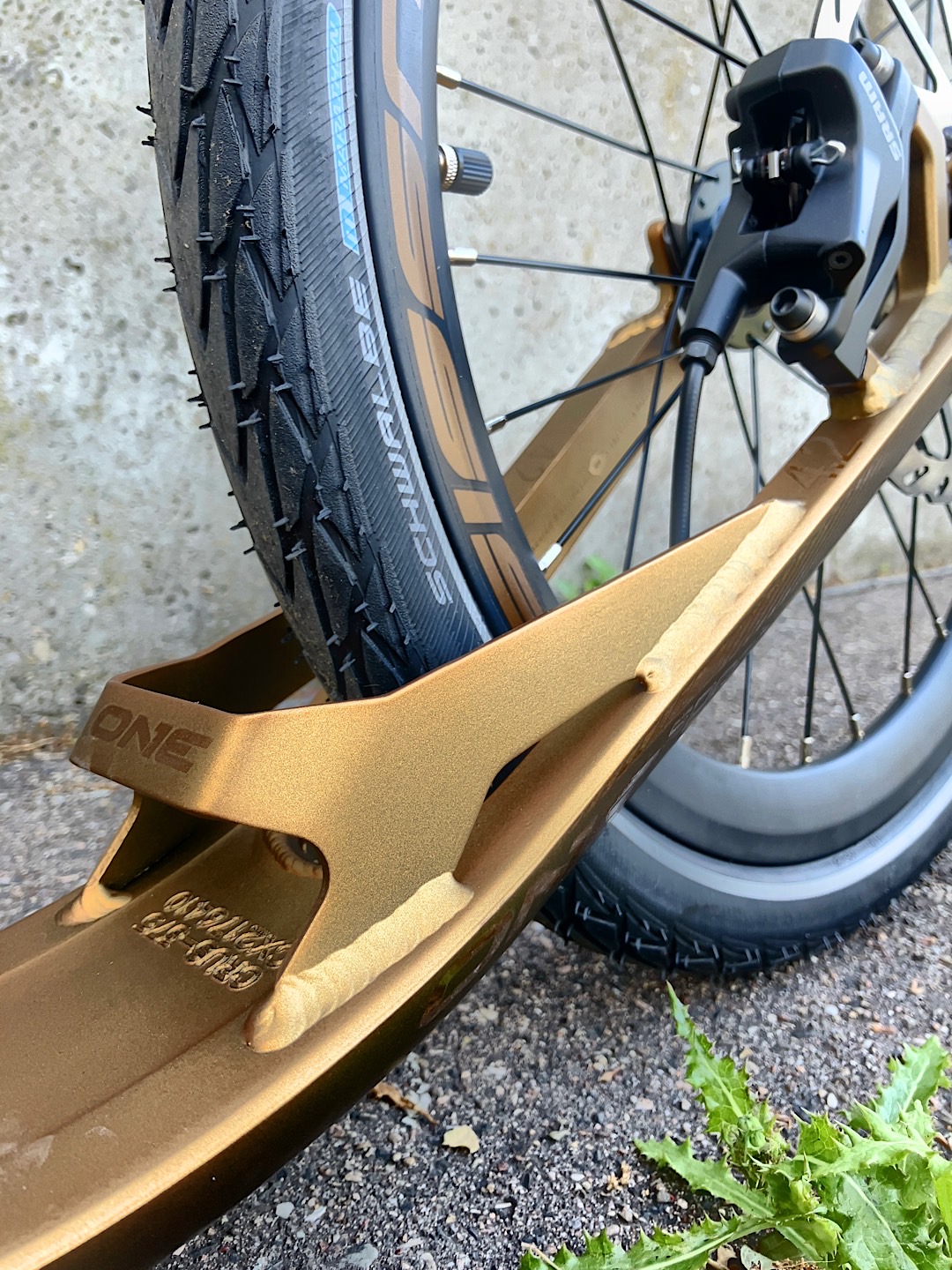 Mein jüngster Zugang ist erst ein paar Tage alt: Crussis Cobra Sport 4.2 in gold, 26" vorn, 20" hinten (jeweils mit Schwalbe Marathon), mit hydraulischen Scheibenbremsen (SRAM Level) und 100 mm breiten Naben.