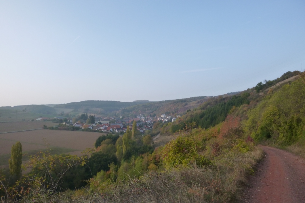Bad Sobernheim: Die Trauben waren noch gar nicht alle geerntet. Immer höher ging es, zwischendurch auch wieder runter und dann auf eine vertrocknete Hochebene bei dem Weinort Monzingen. In Monzingen ging es steil bergab so dass die ganzen schönen Höhenmeter schnell wieder weg waren.