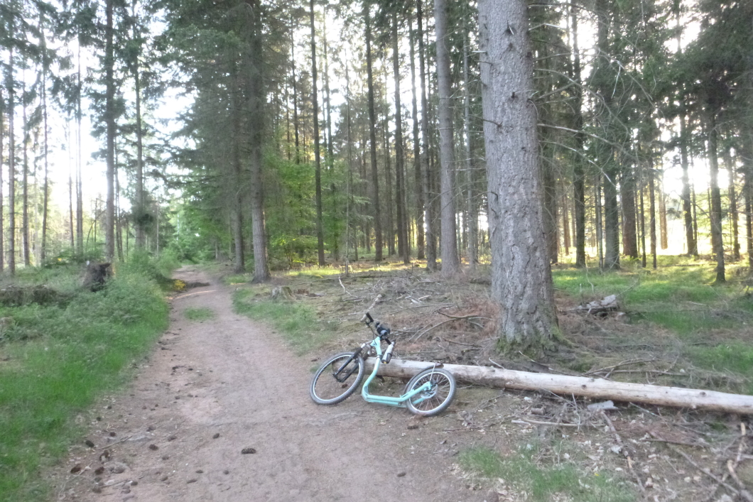 den Tektoss habe ich nicht mitgenommen weil eine längere Strecke auf ebenem Asphalt zu fahren war und der Roller steil den Berg raufgeschoben werden musste und er schwerer als das Kickbike ist. Außerdem habe ich nur für das Kickbike eine Tasche für den Lenker und ich wollte die Tasche dabei haben. Aber so schlecht ist der Tektoss eigentlich gar nicht auf ebenen Strecken und ich denke ich werde in Zukunft öfter damit fahren.