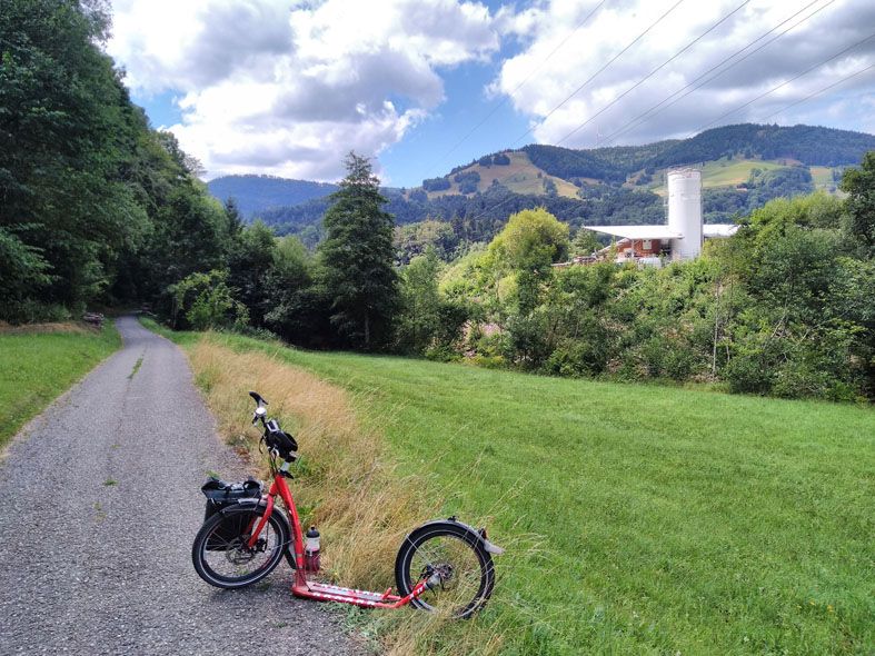 Das Todtnauerli ist ein Radweg auf der stillgelegten Nebenbahnstrecke zwischen Zell & Todtnau im Wiesental. Anschluss an den Wiesentalradweg bis Basel und von dort aus in alle Welt. Perfekt zum Rollern, gut ausgeschildert, wenig Berührungspunkte mit dem Autoverkehr, immer gleichmässige geringe Steigung, viel Schatten und Kühle von der Wiese. Solltet Ihr mal hier unten in der Nähe oder auf der Durchreise sein, lasst Euch das Todtnauerli nicht entgehen.