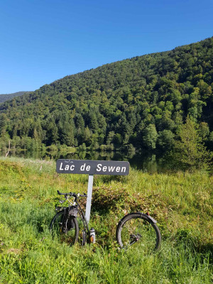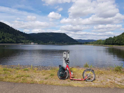 Am Tag1 der Anreise sind wir nach dem Zeltaufbauen ab mittags noch den Voie verte de la Vallée de la Plaine von Raon-l’Étape bis zum Lac de la Plaine nach Celles sur Plaine und zurück gerollert/geradelt. Der Radweg ist optimal zu rollern, sehr gut ausgeschildert und landschaftlich herrlich, mehr geht nicht.