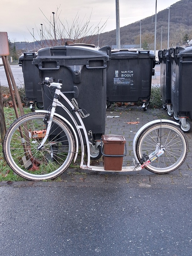nachdem ich jetzt 7 Tage lang "out of order" war (Grippe) , habe ich heute morgen endlich mal wieder mit Roller , ganz ökologisch den Biomüll zum Container gebracht ,