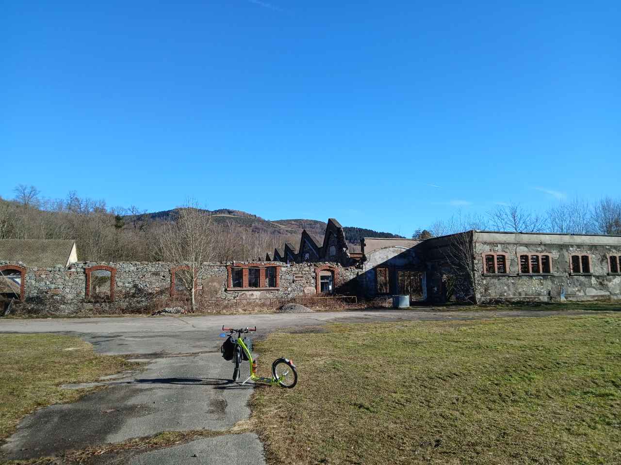 2653Im Moment einer meiner Lieblingsrollerwege, der Voie Verte durch das Thurtal von Thann zum Krüthsee. In Wesserling gibt es einen schönen Park und ein interessantes Textilmuseum. Und überall, wo es Textilindustrie gab, gibt es jetzt Lost-Places. Das Wetter war sehr schön und angenehm zum Rollern, an Langlauf ist zur Zeit wegen Schneemangel nicht zu denken.