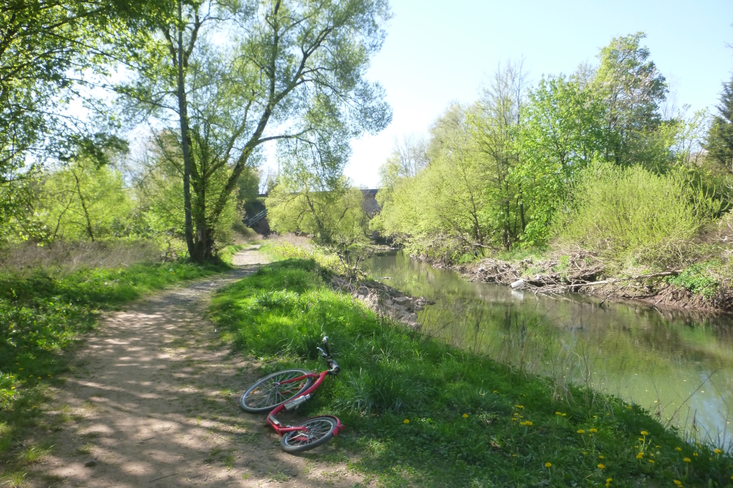 heute bin ich mal ein bißchen weiter als nur in die Stadt gefahren. Ca. 9 km waren es. Zuerst stadtauswärts an der Blies entlang wobei ich den Weg 2 Jahre lang nicht mehr gefahren bin. Anscheinend durch Hochwasser war er ausgewaschen so dass viele dicke Steine herumlagen und ich zeitweise sogar schieben musste. Recht schöne Natur aber der Weg lohnt sich nicht mehr. Ich habe noch Rhabarber im Supermarkt gekauft, hatte aber nur einen Stoffbeutel dabei. Mit dem Griff habe ich den Beutel auf der einen Seite am Lenker befestigt, auf der anderen Seite das Diebstahlschloss um den Rhabarber und den Lenker gemacht. Das ging einigermaßen, hat aber nicht so wirklich Spaß gemacht damit zu fahren. Ich bin dann auf der anderen Bliesseite entlang der Strasse zurück gefahren und dann auf dem Radweg. Das Fahren war o.k. und hat auch Spaß gemacht, aber ich hatte meine Lenkertasche vergessen und nur so eine Hüfttasche wo alles reingestopft war und die rutschte immer runter weil sie zu schwer war. Das war dann auch schwer den Fotoapparat heraus zu nehmen, aber wirklich Interessantes gab es auch nicht zu fotografieren. Es kann also nur besser werden und ich hoffe auch die nächste Tour wird länger.