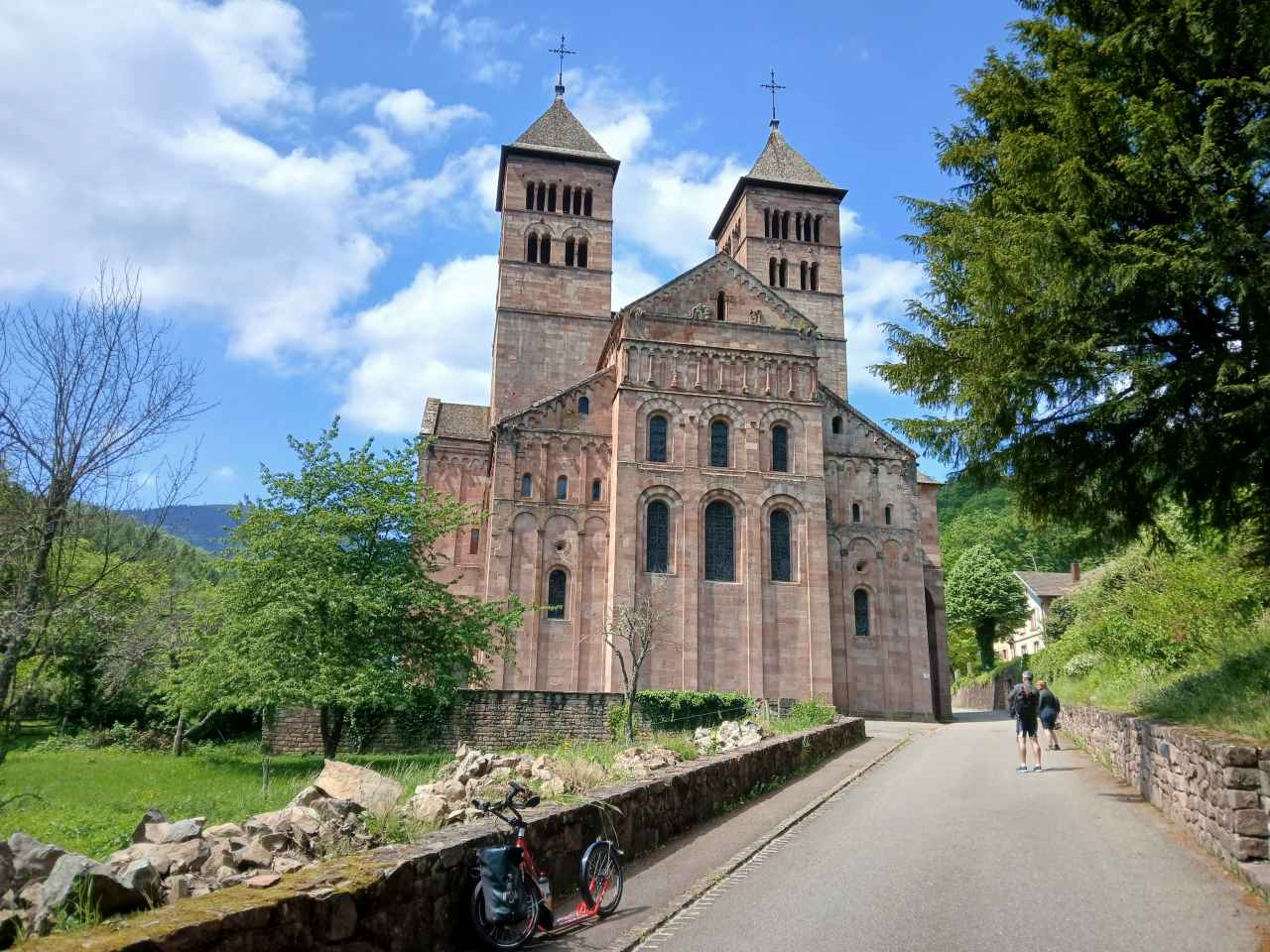 2687Heute war ich mit meinem Rollator auf einem kleinen Kulturtripp über den Eurovelo 5 und dem VV11 (Elsässer Weinroute) von Uffholtz über Guebwiller zum Kloster Murbach und zurück.