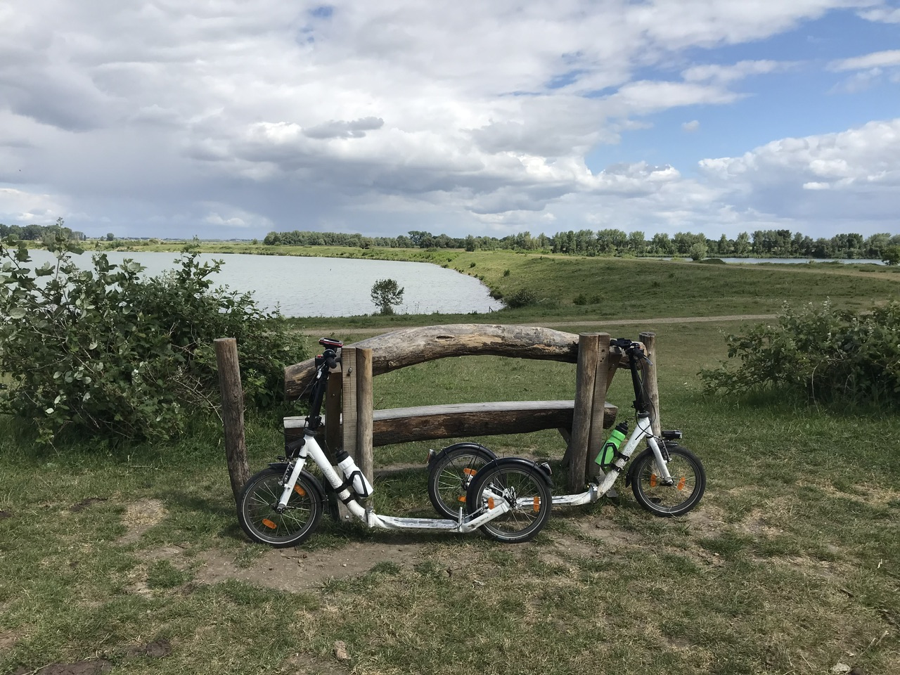 Die Grenzmaas (Landesgrenze zwischen den Niederlanden und Belgien) beginnt im südlichen Bereich dieser Seenplatte. Uns gefällt es neue Strecken mit dem Kickbike zu erkunden, daher reizte es uns die belgische Uferseite der Maas zu erkunden.