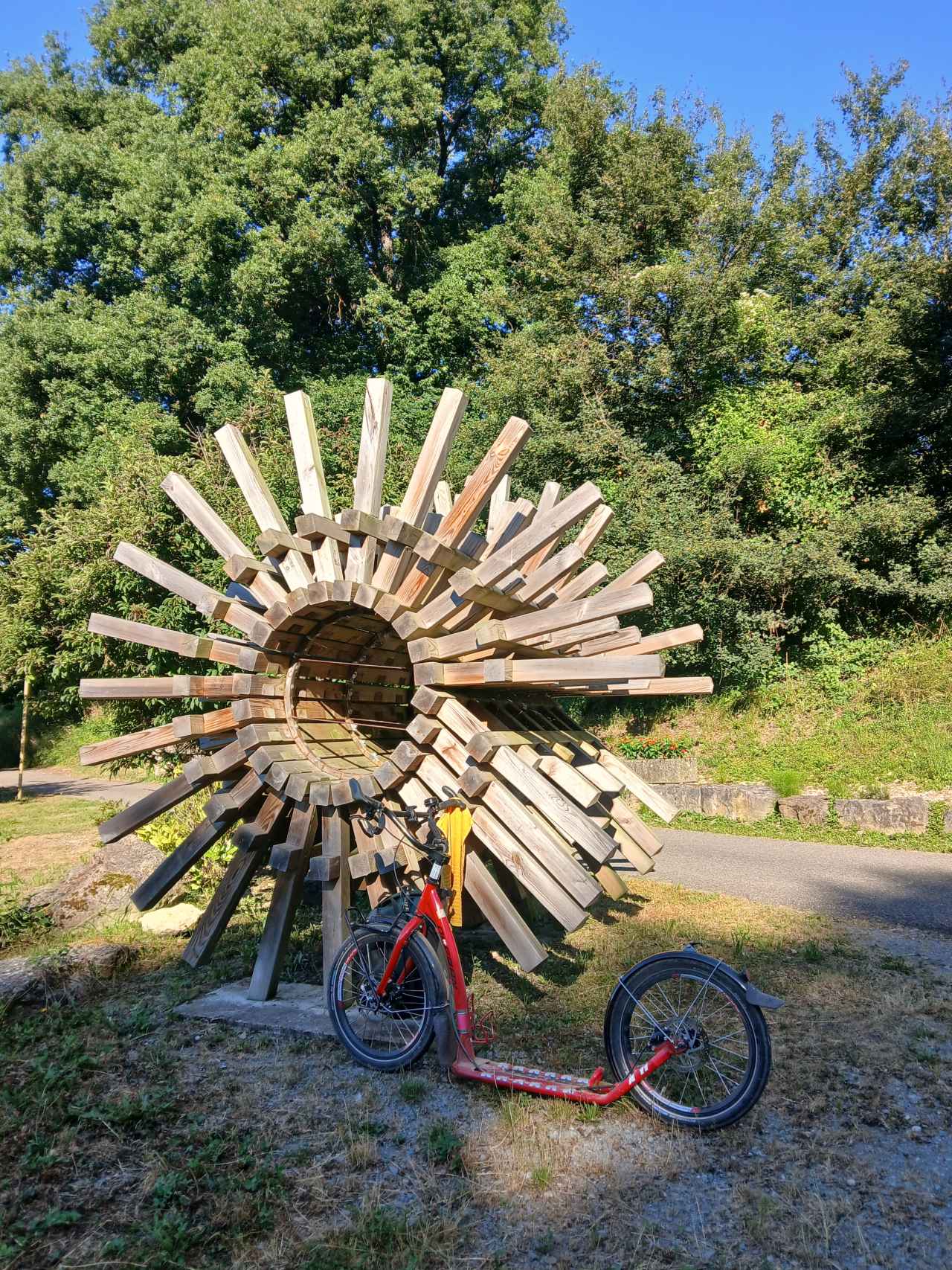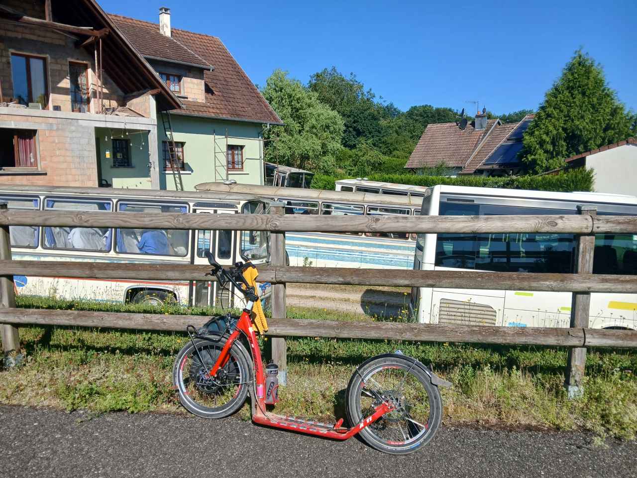Hier noch der Versuch der 3 Bilder von meiner letzten Tour gestern auf dem Radweg der stillgelegten Bahnlinie des Largue-Tals zwischen Dannemarie und Pfetterhouse (Sundgau, Frankreich). Der Radweg ist perfekt zu rollern, durchweg asphaltiert, bzw. betoniert und nur Steigungen, die Eisenbahnen bewältigen konnten. Das schönste an dem Radweg ist bei der jetzigen Hitzewelle von Temperaturen bis 35°C, 3/4 der Strecke verläuft im Schatten oder Halbschatten, also gut zu ertragen, man darf nur nicht all zu lange anhalten, dann läuft sofort die Brühe. https://de.wikipedia.org/wiki/Bahnstrec ... etterhouse