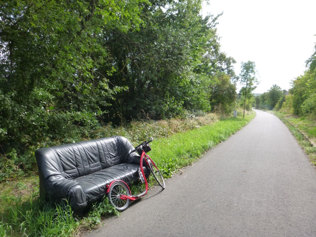 Samstag am Bliestalradweg. Schöne Tour und ideales Wetter. Ein Witzbold hat eine Couch dort aufgestellt.