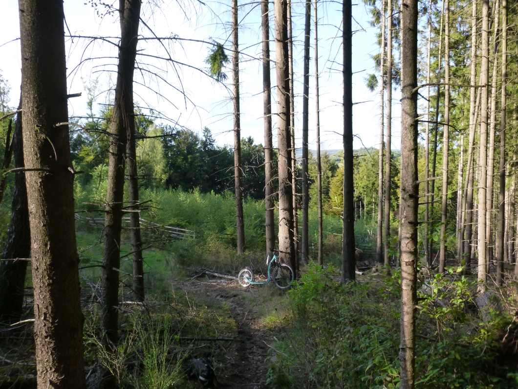 Den Trail in dem schönen Kiefernwald konnte man noch nie richtig fahren, weil er immer voller Bäume lag. Aber zu meiner Überraschung ist er jetzt fast ganz frei und ist jetzt ein richtig schöner Trail.