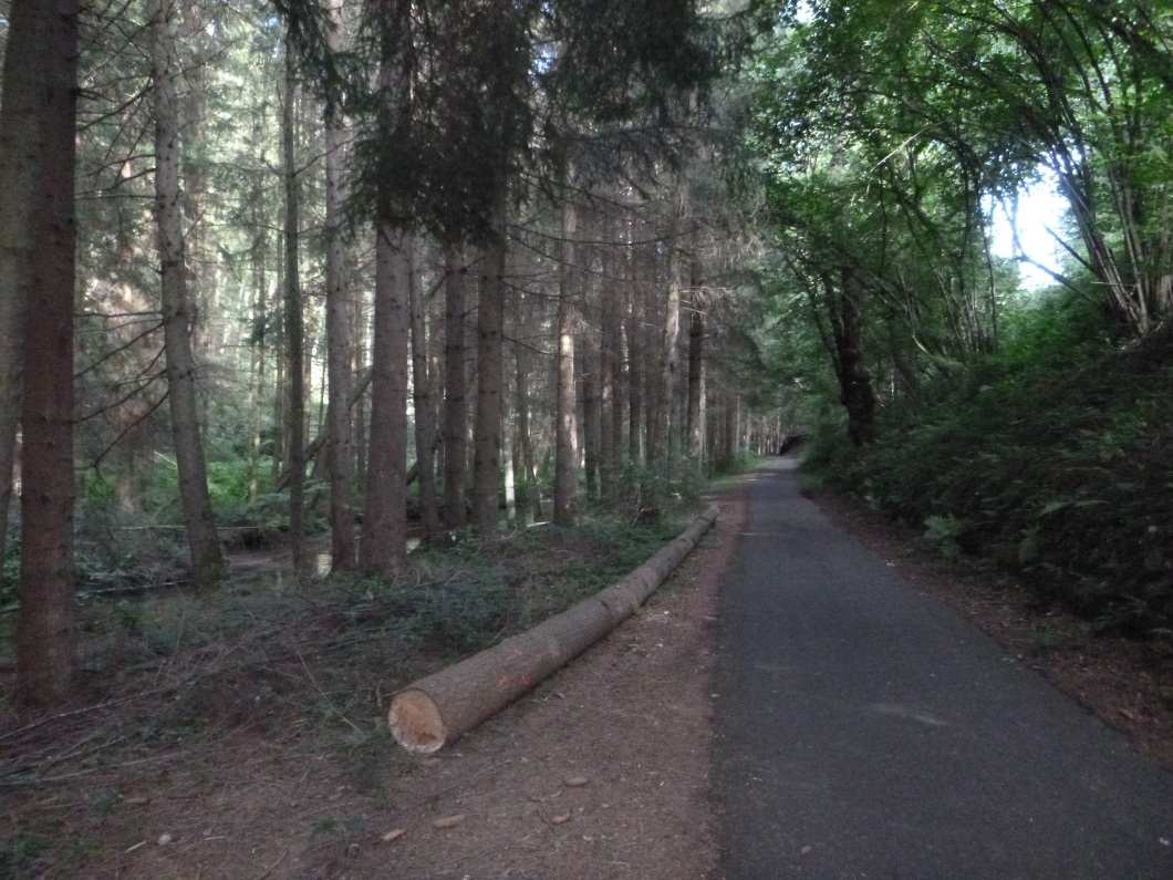 Da ich nicht immer Touren im Kreis fahren wollte, sollte es mal was anders sein und es ging mit dem Zug nach Kaiserslautern. Dort fängt die Pfälzerwald-Tour an, ein Radweg, der am Westrand des Pfälzerwaldes durch verschiedene Bachtäler führt. Der erste Teil ist weniger interessant, da führt der Radweg meistens entlang von Straßen oder wenigstens in Hörweite von Straßen. Ab Queidersbach wird die Strecke sehr schön. Zurück mit dem Zug ging es ab Pirmasens Nord in Richtung Zweibrücken. Hier gibt es eine Zusammenstellung der Radwege in der Pfalz:
