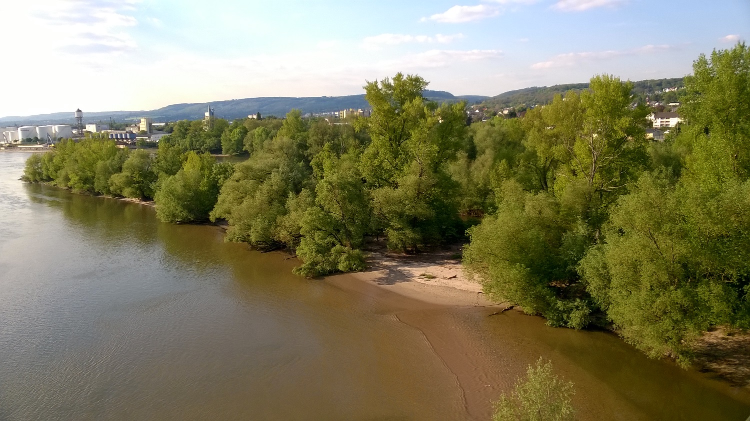 die Rheininsel Niederwerth vom rechtsrheinischen Festland aus gesehen