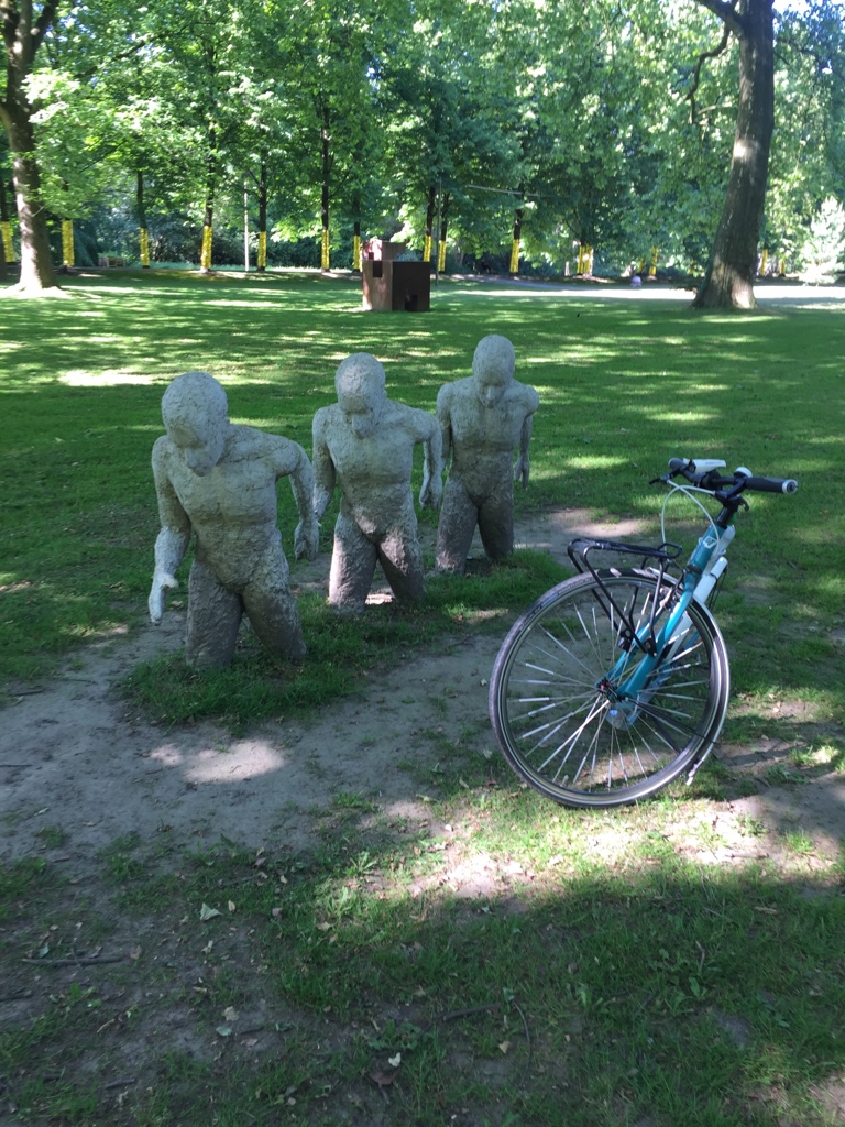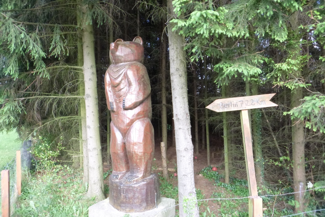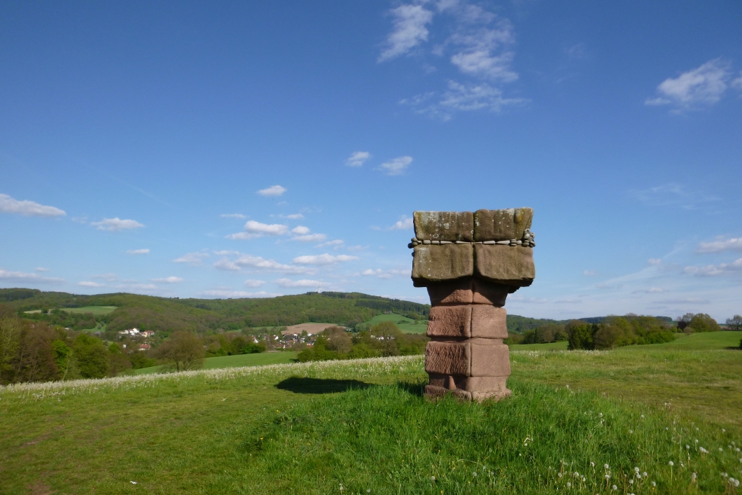 Es ging rauf und runter und dann kamen viele Skulpturen auf einem Feld. Die hier sieht aus wie der Teufelstisch im Pfälzer Wald. Dann ging der Weg steil runter und an dem Berg im Hintergrund wieder hoch.