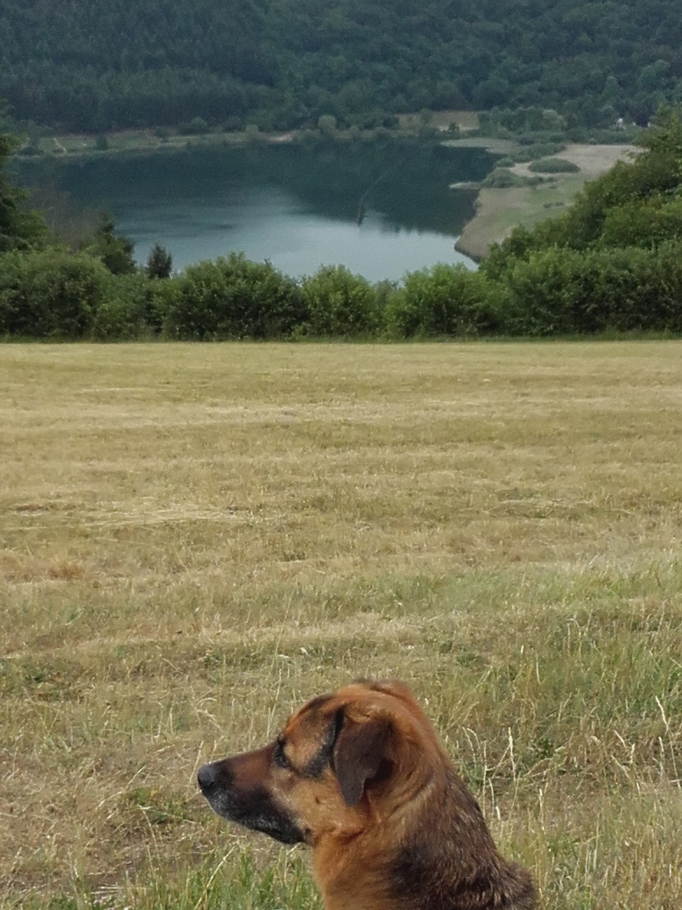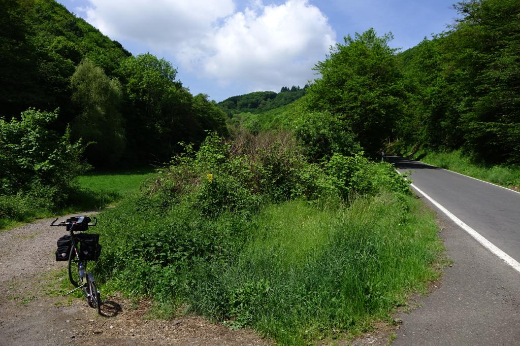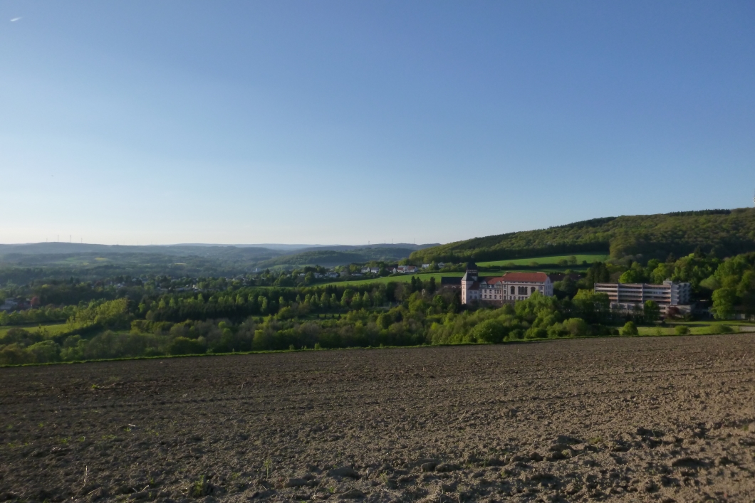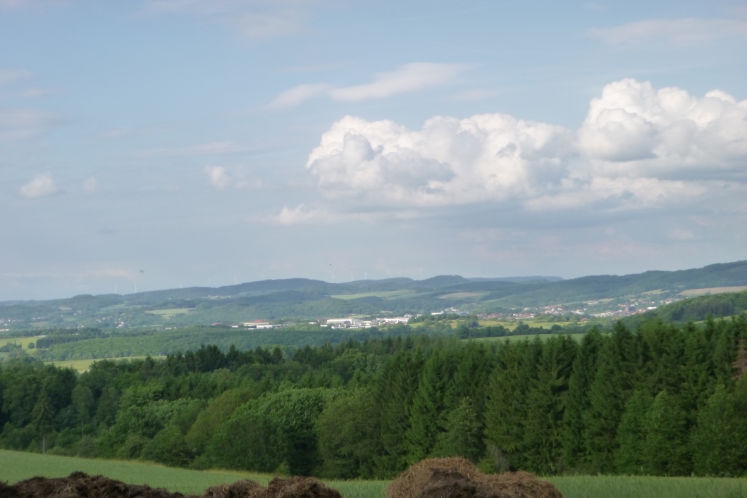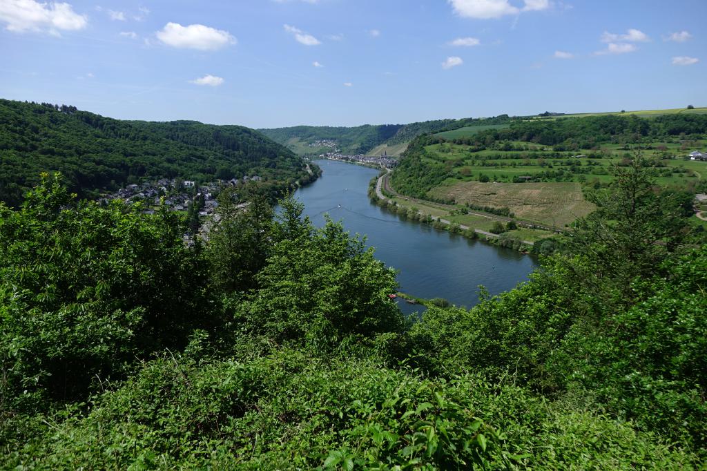 Schöne Aussicht zum Hunsrück: Zum Schluß als Entschädigung für die vielen Berge folgte eine 5 km-Abfahrt: 24 km und 440 hm, das war schon anstrengend aber sehr schön.