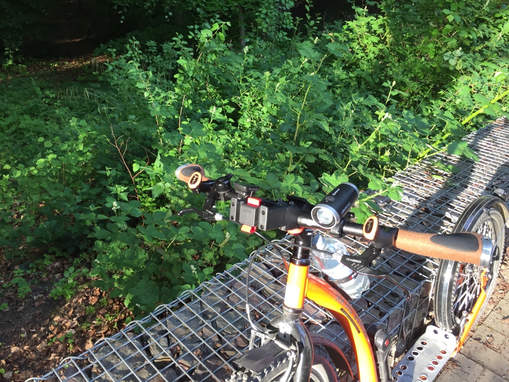 . Die Spikereifen sind wieder der Geländebereifung gewichen, nur in diesem Jahr sind die Schutzbleche am Roller geblieben. Außerdem hab ich dem Roller innen liegende Hörnchen spendiert. Die werde ich mal ausgiebig testen.