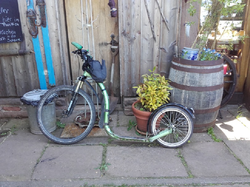 Ich bin mit dem Roller und meinem Hexenschuss immer noch besser unterwegs als zu gehen. Die Therapie mit dem Rollern hilft, die Schmerzen lassen nach.