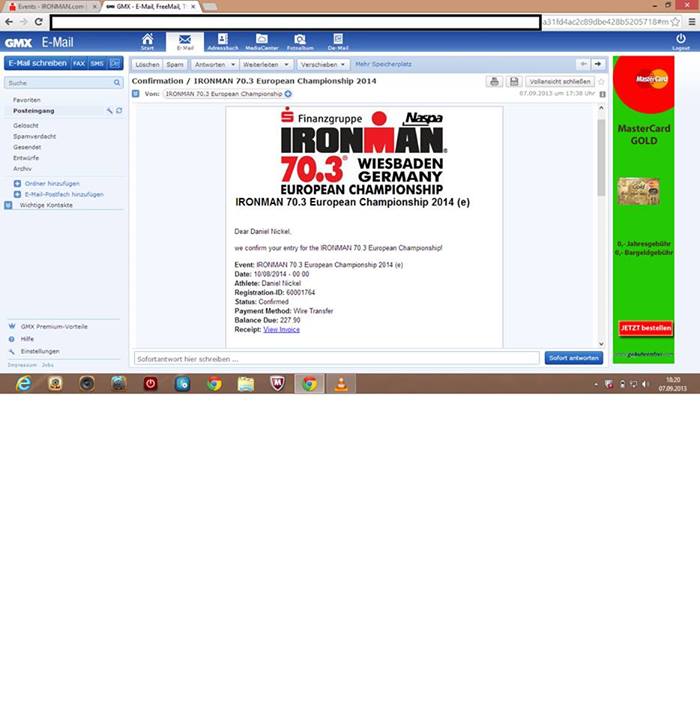 Neuigkeiten gibt es natürlich auch noch. Ich habe es gewagt und mich für den Ironman 70.3 in Wiesbaden angemeldet. Bin richtig heiss auf die Radstrecke, die einen sehr fordern soll. Aber wir rocken das, wa Kaya ?! ;-)