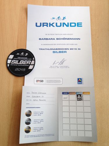 Diese Jahr habe ich das silberne Abzeichen erworben. Man bekommt einen Aufnäher, Stempelpass und eine Urkunde zu geschickt. Man muss nur die Ergebnislisten per E-Mail einreichen. Das kostet 9 Euro.
