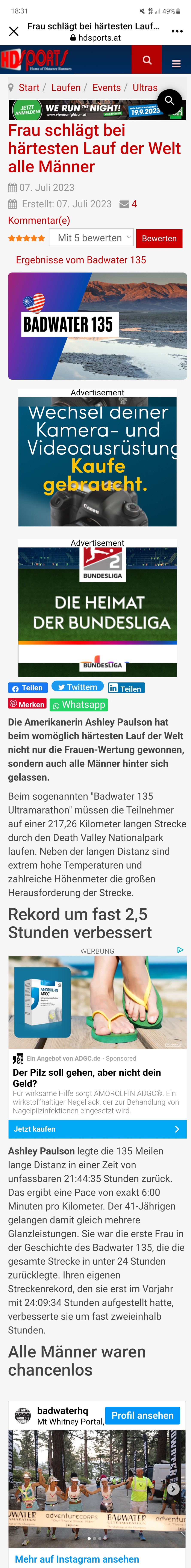 2Fast eine Duplizität der Ereignisse. Beim diesjährigen Badwater, der aktuell noch läuft (hier gibts Livetracking https://dbase.adventurecorps.com/result ... 103&bwr=Go )