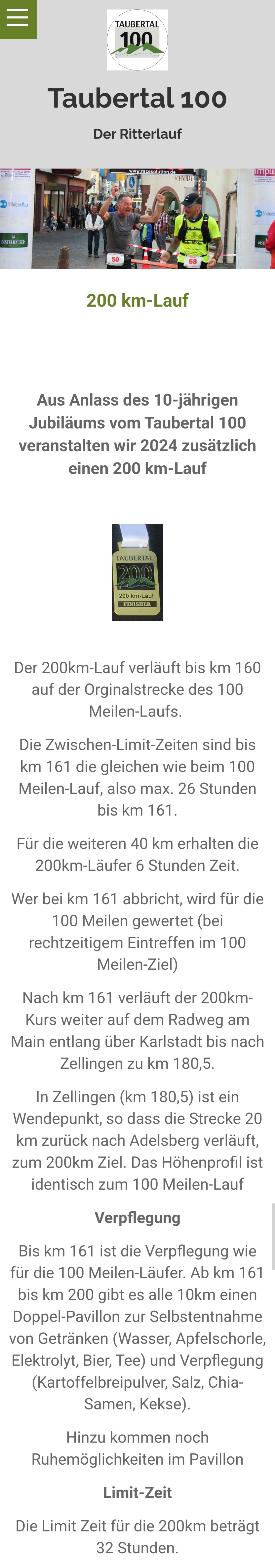 Beim diesjährigen Ultralauf Taubertal 100 wird anlässlich des 10-jährigen Jubiläums ein XXXXXXXL-Lauf angeboten.