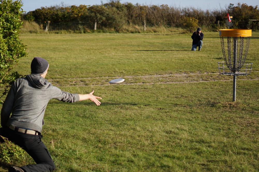 Habe jetzt eine interessante Sportart entdeckt und am letzten Wochenende mal bei einem Turnier in Kellenhusen fotografiert: DiscGolf, siehe DiscGolf-Turnier in Kellenhusen 2012 . Top-Spieler können ca. 180 m weit werfen (mit Langdistanz-Scheibe, es gibt auch andere, z.B. zum Putten). In Europa ist die Sportart noch klein, in Amerika soll sie verbreiteter sein.