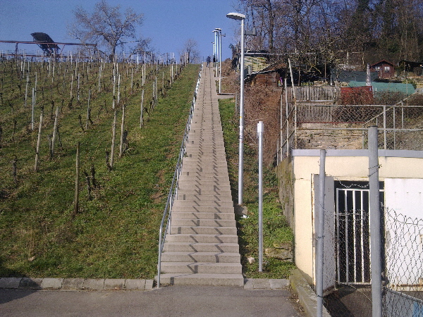 .... vor Ort ermittelt. Von der Böblinger Straße bis zur Gebelsbergstraße sind es 110 Stufen, von der Gebelsbergstraße bis zur Wannenstraße 73 Stufen und von der Wannenstraße bis zur Hohentwielstraße 174 Stufen. Macht zusammen 357 Stufen.