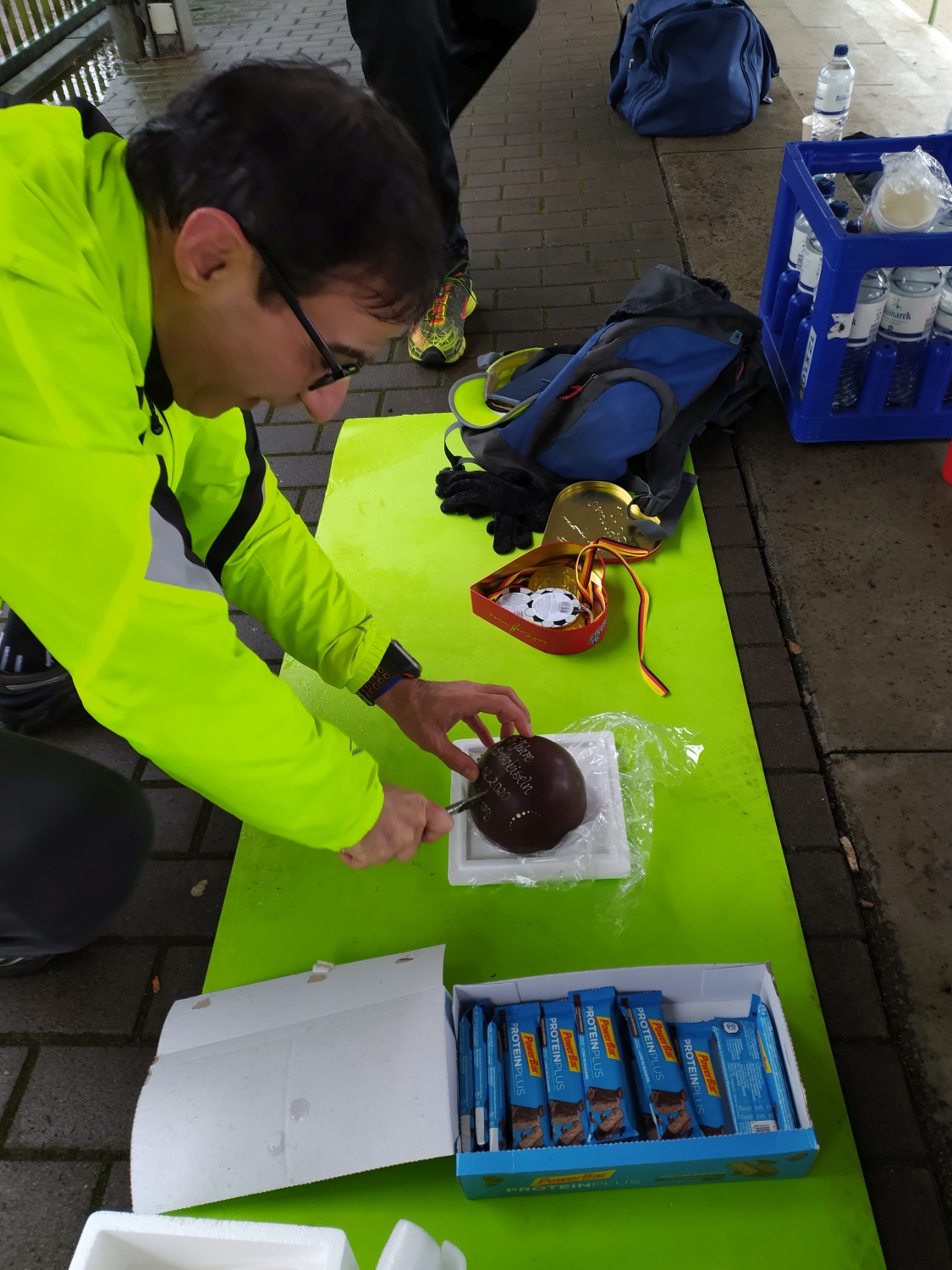und einem super dicken Schokoladenkuchen zur Erinnerung an das 5. Jahr Stadionkreiseln in Hamburg