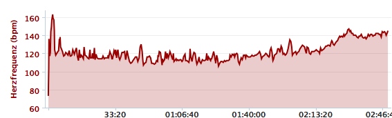 Den Großteil der Strecke (ca. 30km) habe ich mit einem Puls Wert von etwa 140bpm gelaufen.